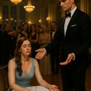 Rain whispered against the tall windows of the grand ballroom, blurring the city lights beyond. Inside, laughter floated under the chandeliers, mingling with perfume, polished wood, and…