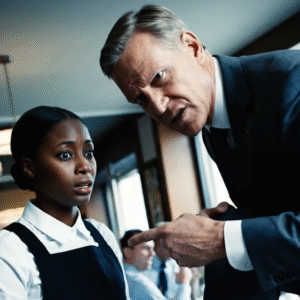 “Kneel down and clean my shoes right now!” The billionaire shouted, but the 24-year-old Black waitress’s calm five-word answer stopped the entire restaurant, ended his career, and changed her life forever. He thought his money was his power… he never expected her dignity to be a weapon.