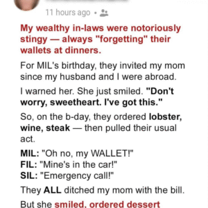 My In-Laws Tried to Skip Out on a $1,500 Dinner Bill — But My Mom’s Brilliant Comeback Left Them Speechless
