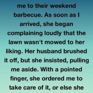 My boss’s wife, Karen, invited me to their weekend barbecue. As soon as I arrived, she began complaining loudly that the lawn wasn’t mowed to her liking….