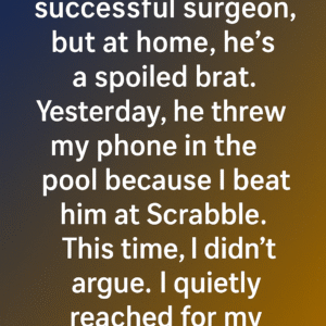 My husband is a surgeon, successful but at home, he’s a spoiled brat. Yesterday, he threw my phone in the pool because I beat him at Scrabble….