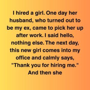 I hired a girl. One day her husband, who turned out to be my ex, came to pick her up after work. I said hello, nothing else….