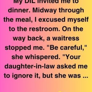 My DIL invited me to dinner. Midway through the meal, I excused myself to the restroom. On the way back, a waitress stopped me. “Be careful,” she…