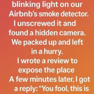 My wife noticed a blinking light on our Airbnb’s smoke detector. I unscrewed it and found a hidden camera. Heart racing, I showed her, and we packed…