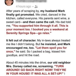 My FIL Insisted I Go On a Spa Weekend He Paid For – Halfway There, My Neighbor Called Screaming, ‘It Was All Their Plan! Go Back Now!’