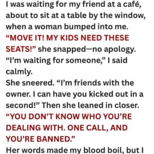 Tensions rise when Claire’s serene café morning is interrupted by a demanding mother insisting on her seat. As the woman’s rude persistence escalates to aggression, Claire remains…