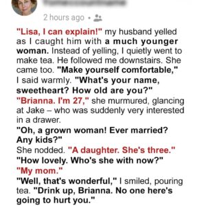 Lisa came home early and found her husband in bed with a woman half her age, but instead of screaming, she offered them tea. What followed left…