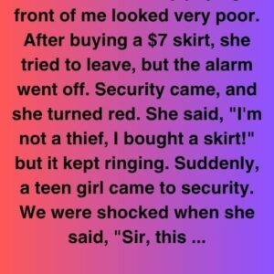 At the mall, the lady paying in front of me looked very poor. After buying a $7 skirt, she tried to leave, but the alarm went off….