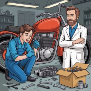 A mechanic was removing a cylinder head from the motor of a motorcycle when he spotted a well-known heart surgeon in his shop. The surgeon was there…