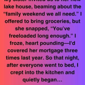 My sister Zahra invited us to her new lake house, beaming about “the family weekend we all need.” I offered to bring groceries, but she snapped, “You’ve…