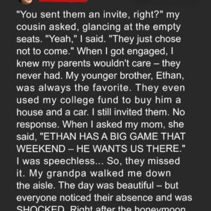 On my wedding day, two seats at the front remained empty — my parents’ seats. For years, they’d favored my brother Ethan, the star athlete, while I…