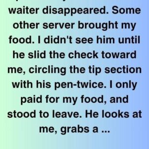 The waiter left after I ordered. Another server brought my dinner. I didn’t see him until he slid the check toward me, circling the tip twice. I…