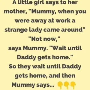 A young girl tells her mother: “Not now,” responds Mummy, “a strange lady came around while you were away at work.” Hold off until Daddy comes home….