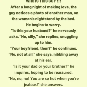 After a long night of making love, the guy notices a photo of another man, on the woman’s nightstand by the bed… He begins to worry. “Is…
