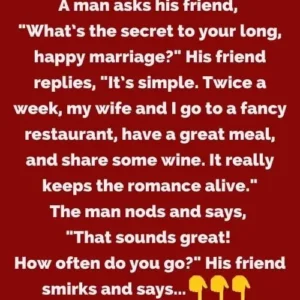 A man asks his friend, “What’s the secret to your long, happy marriage?” His friend replies, “It’s simple. Twice a week, my wife and I go to…