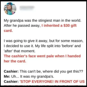 My grandfather was the world’s most cheap person. I got a $30 gift card from him after he d!ed. For some reason, I chose to use it…