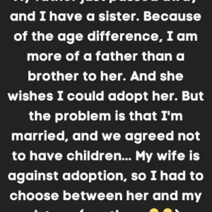 The brother has the idea to adopt his little sister after their father passed away, but he has discovered that his wife is against it. I’m curious…
