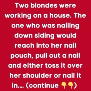The one who was nailing down siding would reach into her nail pouch, pull out a nail and either toss it over her shoulder or nail it…
