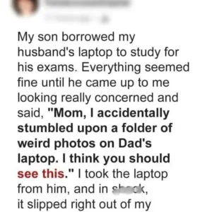 My son stole my husband’s laptop to study for an exam. Everything appeared fine until he approached me, visibly disturbed, and said, “Mom, I unintentionally discovered a…