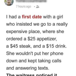 I went on a first date with a girl who insisted we eat at a high-end restaurant, even though I suggested something more casual. Once seated, she…