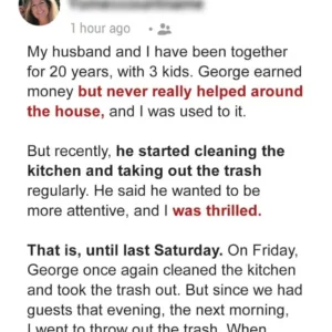 My Husband Suddenly Started Cleaning the Kitchen & Taking Out the Trash – When I Discovered Why, I Got Revenge