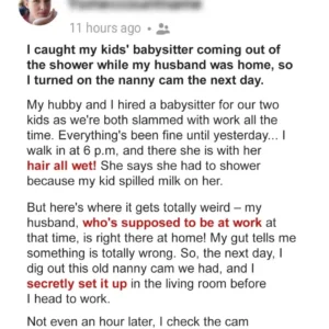 I Caught My Kids’ Babysitter Coming Out of the Shower While My Husband Was Home, So I Turned On the Nanny Cam the Next Day