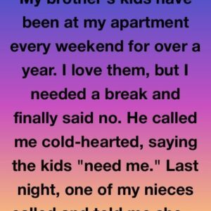My brother’s kids have been at my apartment every weekend for over a year. I love them, but I needed a break and finally said no. He…