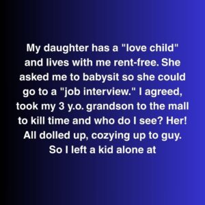 My daughter has a “love child” and lives with me rent-free. She asked me to babysit so she could go to a “job interview.” I agreed, took…