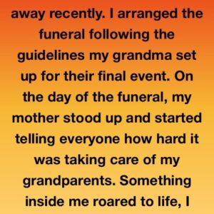 My grandparents passed away recently. I arranged the funeral following the guidelines my grandma set up for their final event. On the day of the funeral, my…