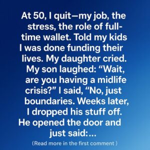At 50, I quit—not life, but the endless roles that had worn me down. I quit the stressful job that drained me, the constant rushing, and most…