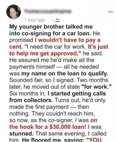 Co-Signed My Brother’s Car Loan — Now I Owe $30,000