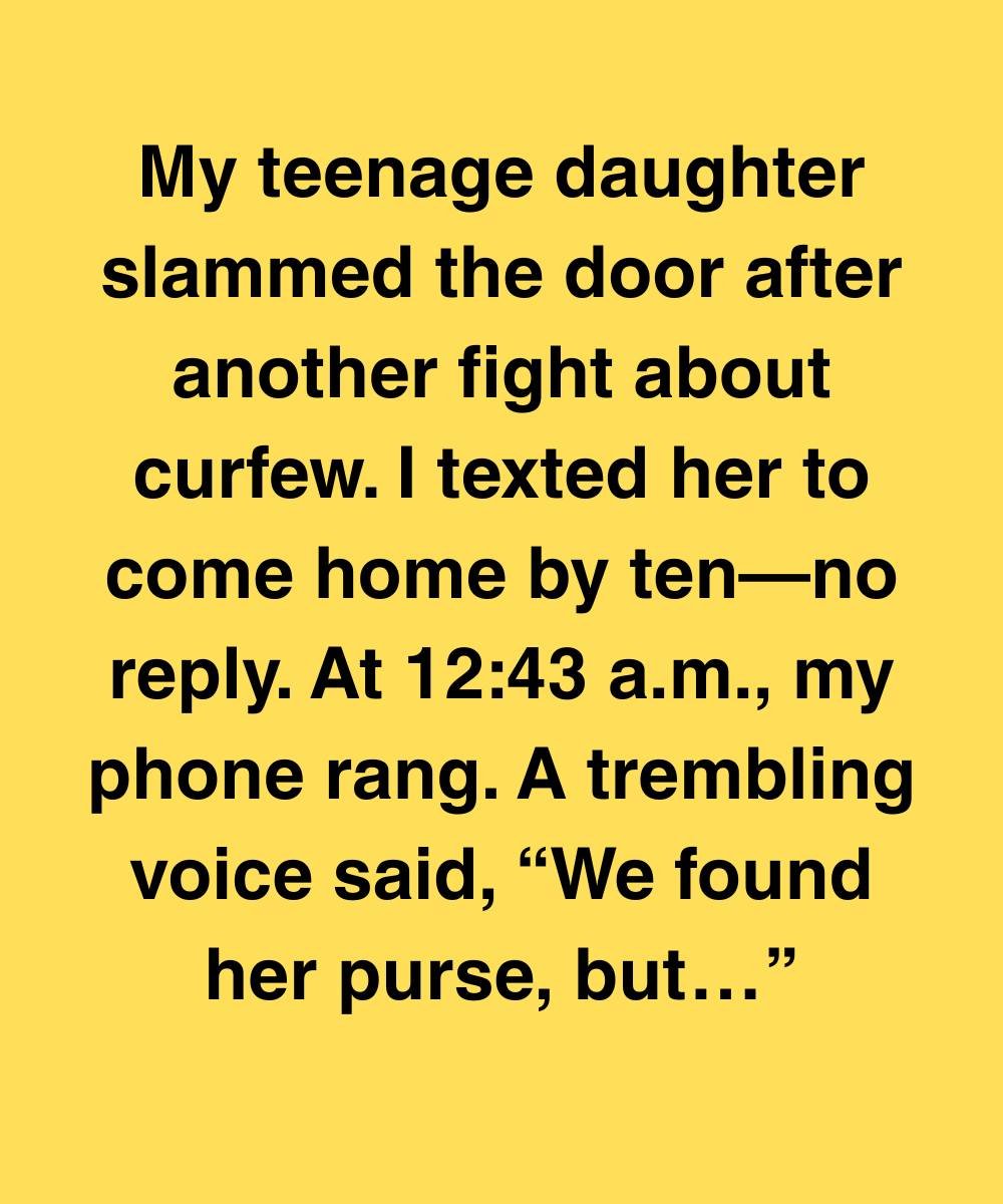 I realized then that keeping her safe wasn’t just about setting boundaries—it was about building trust. And that night, when a trembling voice said, “We found her purse, but…”—what I truly found was the way back to my daughter’s heart.