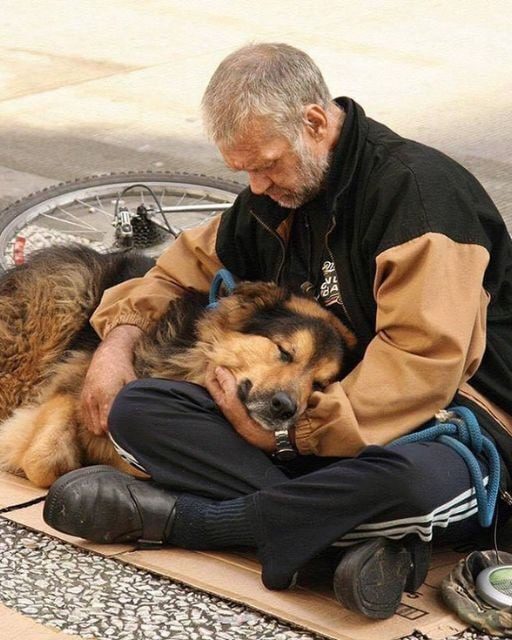 They were there again. Man and dog. Always together. The man sat with his back against the crumbling brick wall, a brown jacket zipped up to his chin, though the sleeves were too short to hide his bony wrists. The dog, a black-and-white mutt with tired eyes and the calm patience of an old soul, was tucked into his lap like it had always been there.