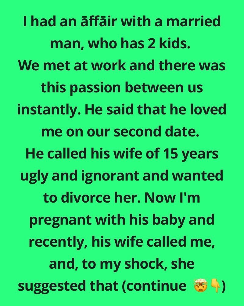 “Now I’m pregnant with our baby. Last night, Kevin’s wife called me and, to my shock, she knew everything about me: my name, my age, she knew where I lived, and she knew I was 4 months pregnant with her husband’s baby.
