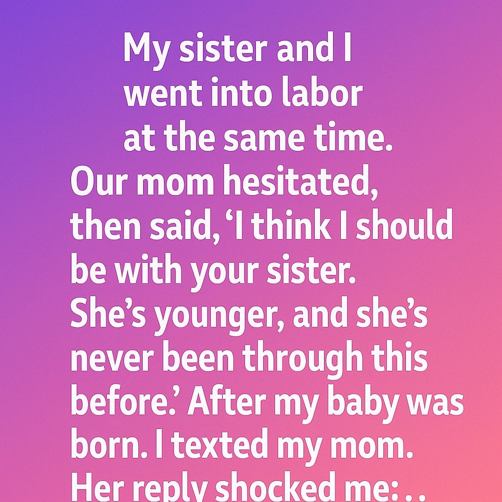 Her reply shocked me.At first, I tried not to take it personally. I understood the logic—my younger sister had been nervous her entire pregnancy, and she often leaned on our mom for emotional support. I, on the other hand, had always been the “independent one,” the one who reassured everyone else instead of asking for reassurance myself.