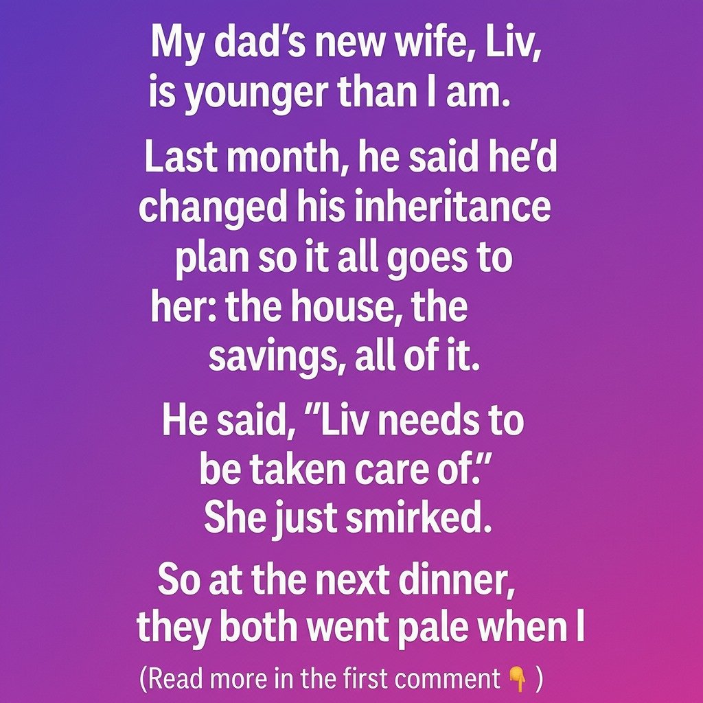 My dad’s new wife, Liv, is actually younger than me, which made things feel awkward from the start. I did my best to stay polite and open-minded, even though our chats always carried a hint of discomfort. Then, last month, Dad told me he had completely revised his will so that everything would go to her.