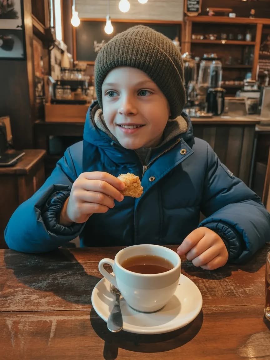 A boy, maybe 11 or 12, stood just inside the doorway. His jacket hung loosely from his narrow shoulders, the sleeves frayed at the edges, and his sneakers were soaked through.