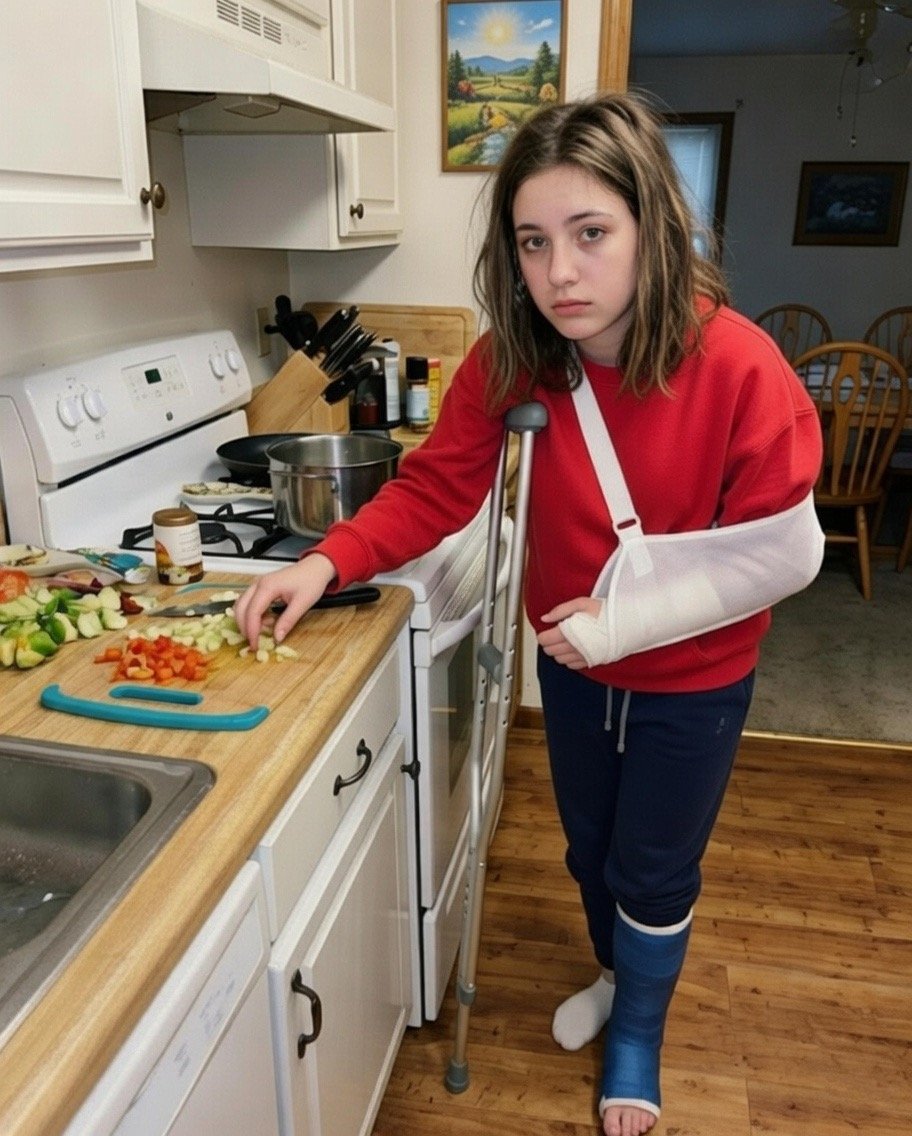 I stood there, gripping the railing with my good hand, trying not to cry. Each step looked impossible.