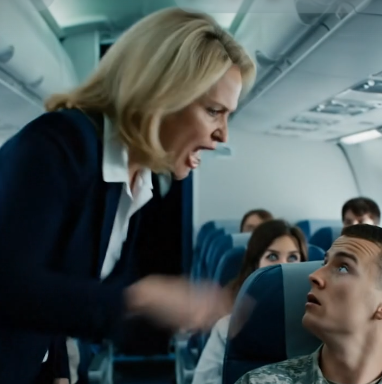 “You think surviving makes you a hero?” My voice trembled, not with sorrow, but with a fury that felt cleansing, necessary. “No. It makes you a coward! Those men gave their lives, their futures, everything! And you came home to sit comfortably on this plane while their families grieve, while their mothers weep! How does that feel? Does the free flight make up for it?”