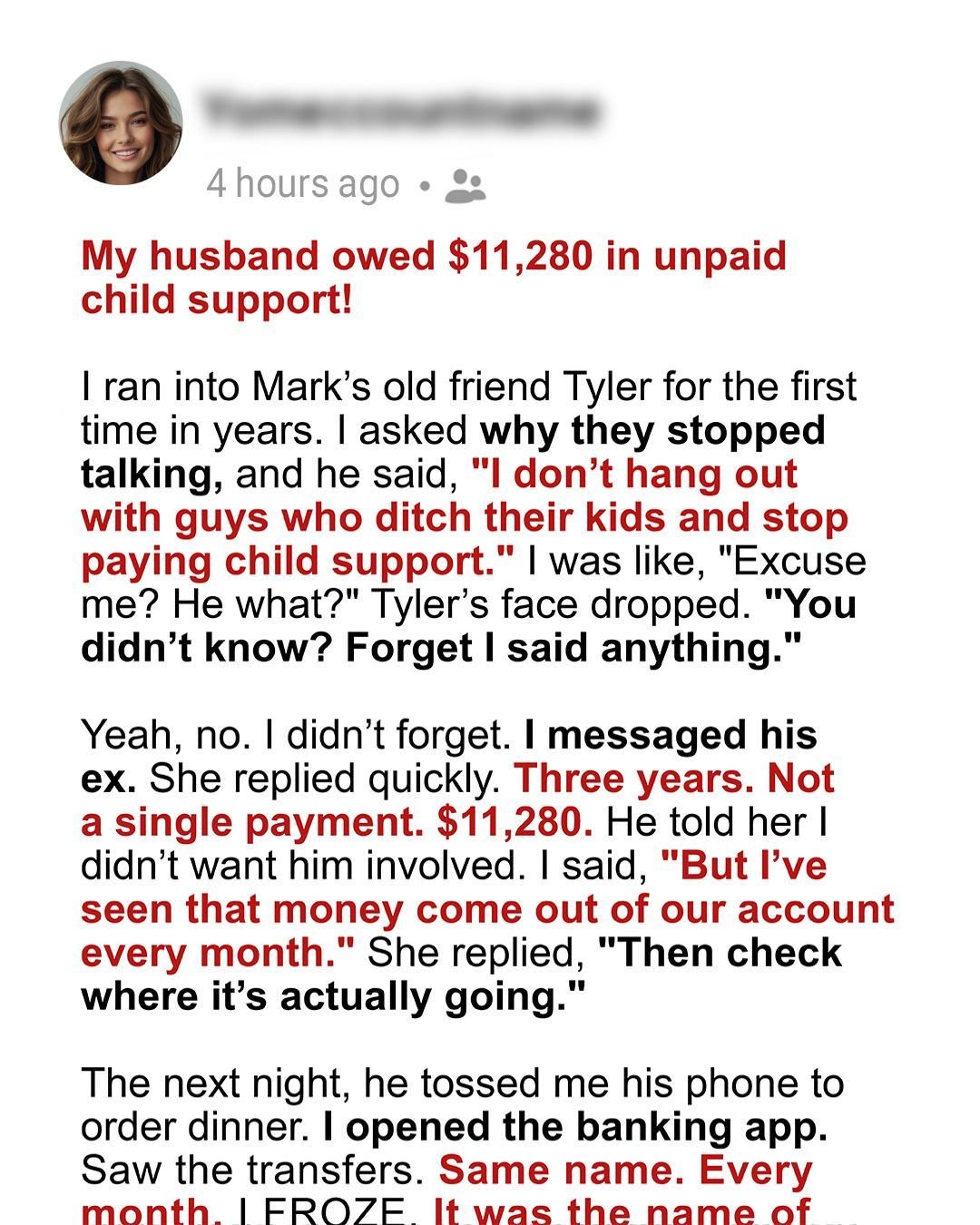 Then one afternoon, I ran into his former best friend, Tyler, who accidentally revealed that Mark hadn’t paid child support in years. Shocked, I reached out to Sarah. She showed me court documents proving he owed $11,280.