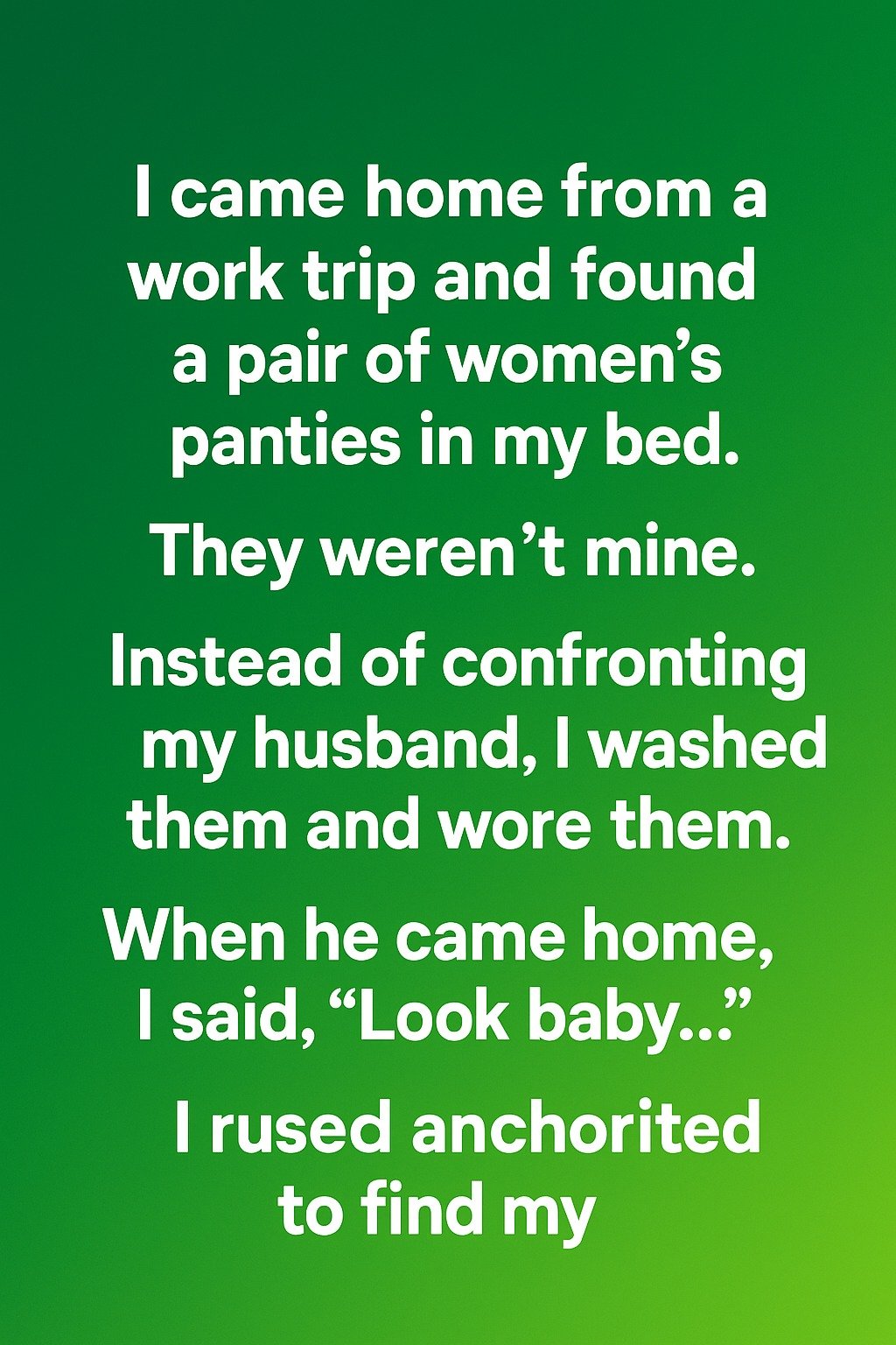 Instead of confronting my husband, I decided to think carefully. I washed the underwear, folded them, and placed them neatly in my drawer. When my husband came home, I greeted him as usual but didn’t mention what I’d found.