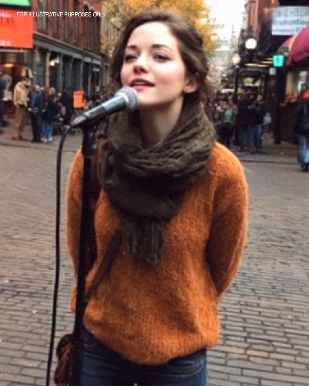 But here it was, clear as day, sung by a young woman standing across the square, eyes closed, with a serene smile.