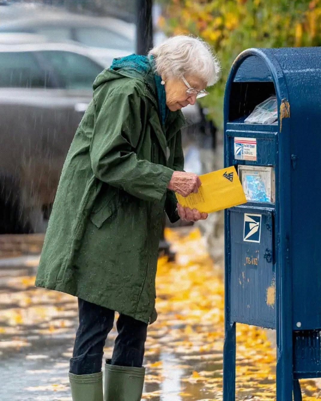 I helped her to her feet, brushed the rain off her coat, and picked up the envelope. “Here,” I said, handing it back carefully. She smiled weakly.