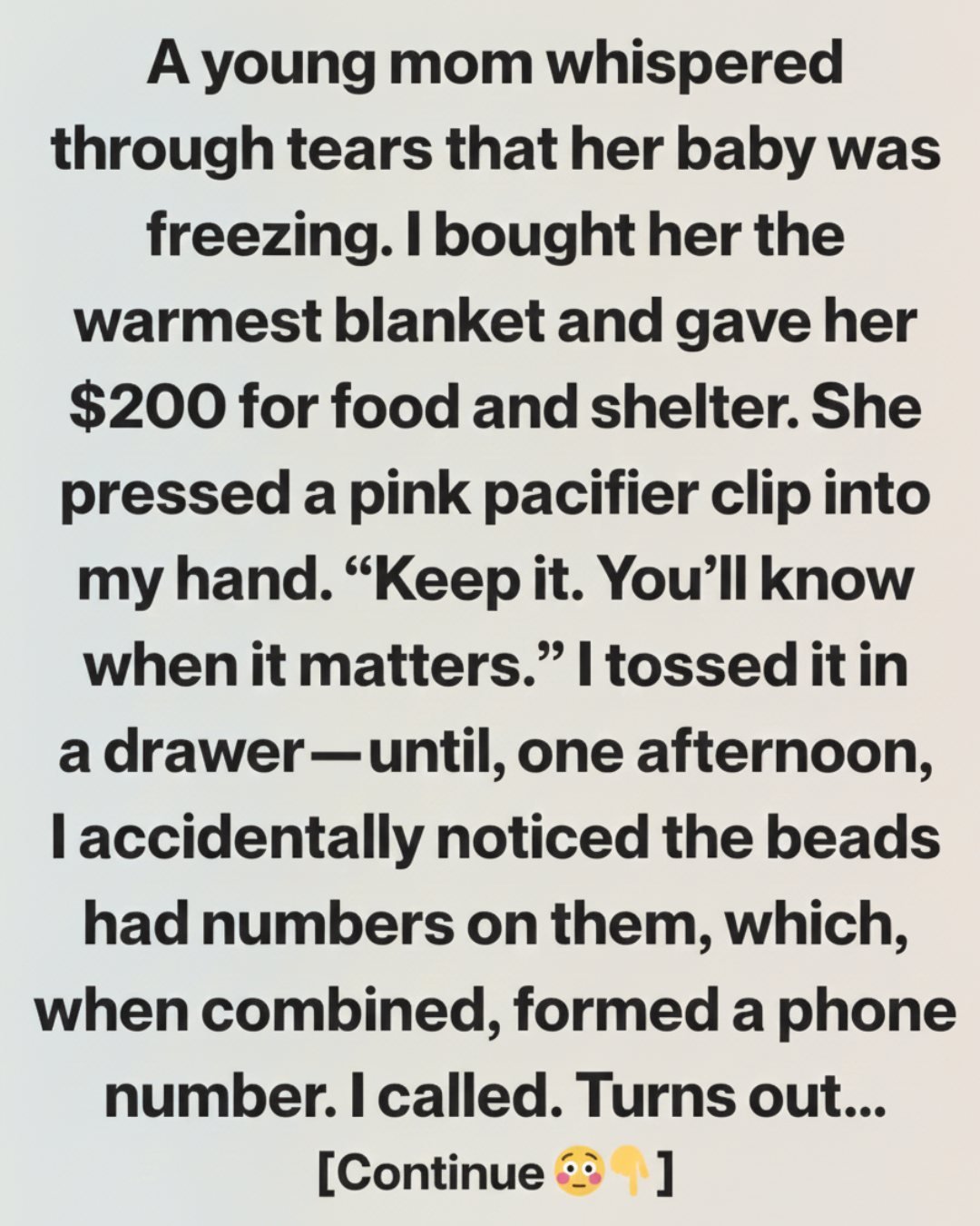 Before I could step away, she unclipped a small pink pacifier holder from her baby’s blanket. Rubber beads, a soft clasp—simple, nothing remarkable.