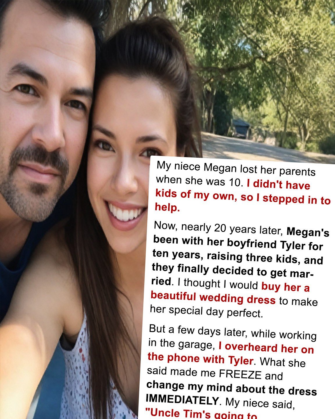 Megan and Tyler were outside the house, talking. “I know, Tyler, but Uncle Tim’s going to give us the money,” Megan said. I froze, wrench in hand.