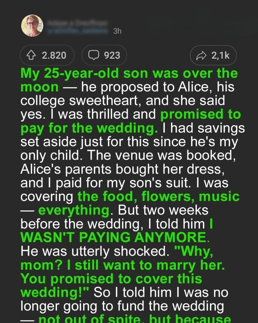 I was thrilled to fund my only son’s wedding until a casual chat over coffee shattered everything. Two weeks before the vows, I pulled the plug.