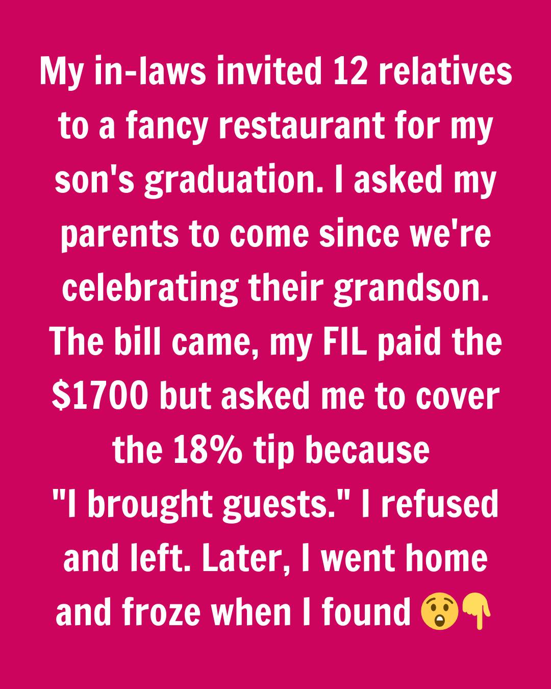 My in-laws invited 12 relatives to a fancy restaurant for my son’s graduation.