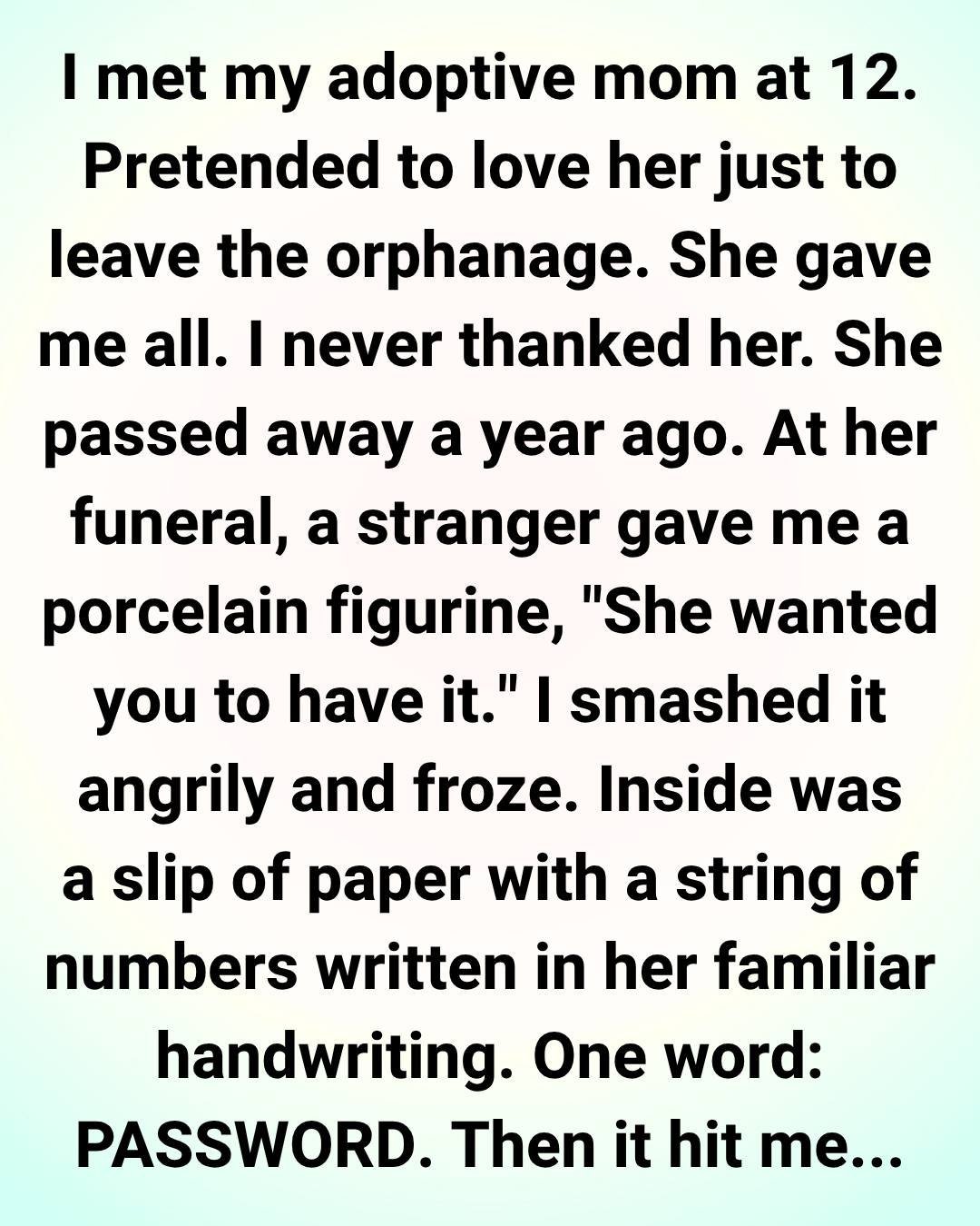 I met my adoptive mom when I was twelve. To be honest, I didn’t love her. I just wanted to get out of the orphanage, and she was my ticket.