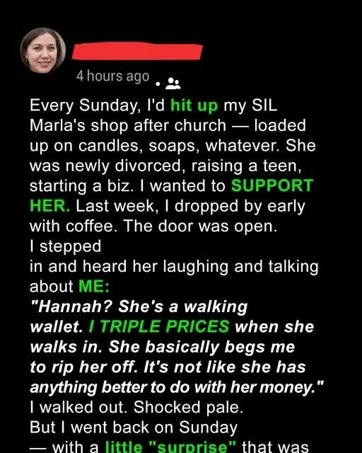 “I triple prices when she walks in. It’s like taking candy from a baby.” My heart sank. I’d been nothing but kind, and she saw me as a joke.