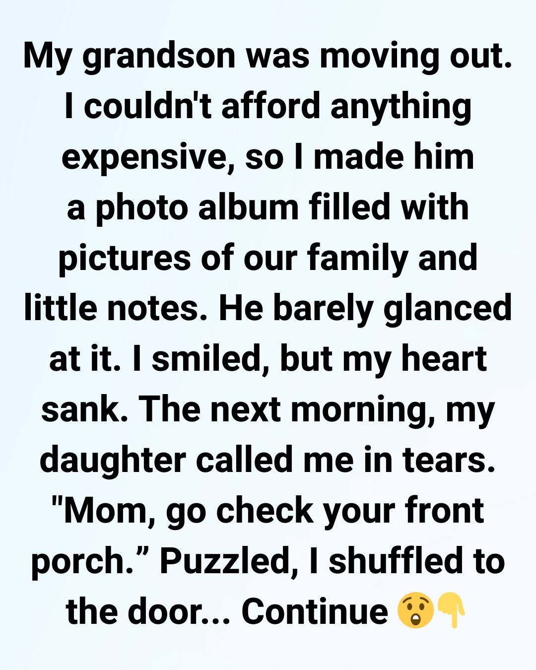 When I handed it to him on moving day, he barely opened it. Just a quick glance at the cover, a quiet “Thanks, Grandma,” and then he went right back to packing boxes. I smiled so he wouldn’t see how deeply his reaction stung, but later that night, sitting alone in my too-quiet house, I found myself wondering if the album had meant anything to him at all… or if it was just one more reminder that the world he was stepping into no longer had much room for me.